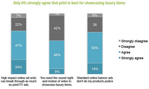 不光是電視媒體,似乎印刷媒體更慘。只有6%的被調(diào)查者認(rèn)為印刷媒體是展示奢侈品產(chǎn)品的最好載體。