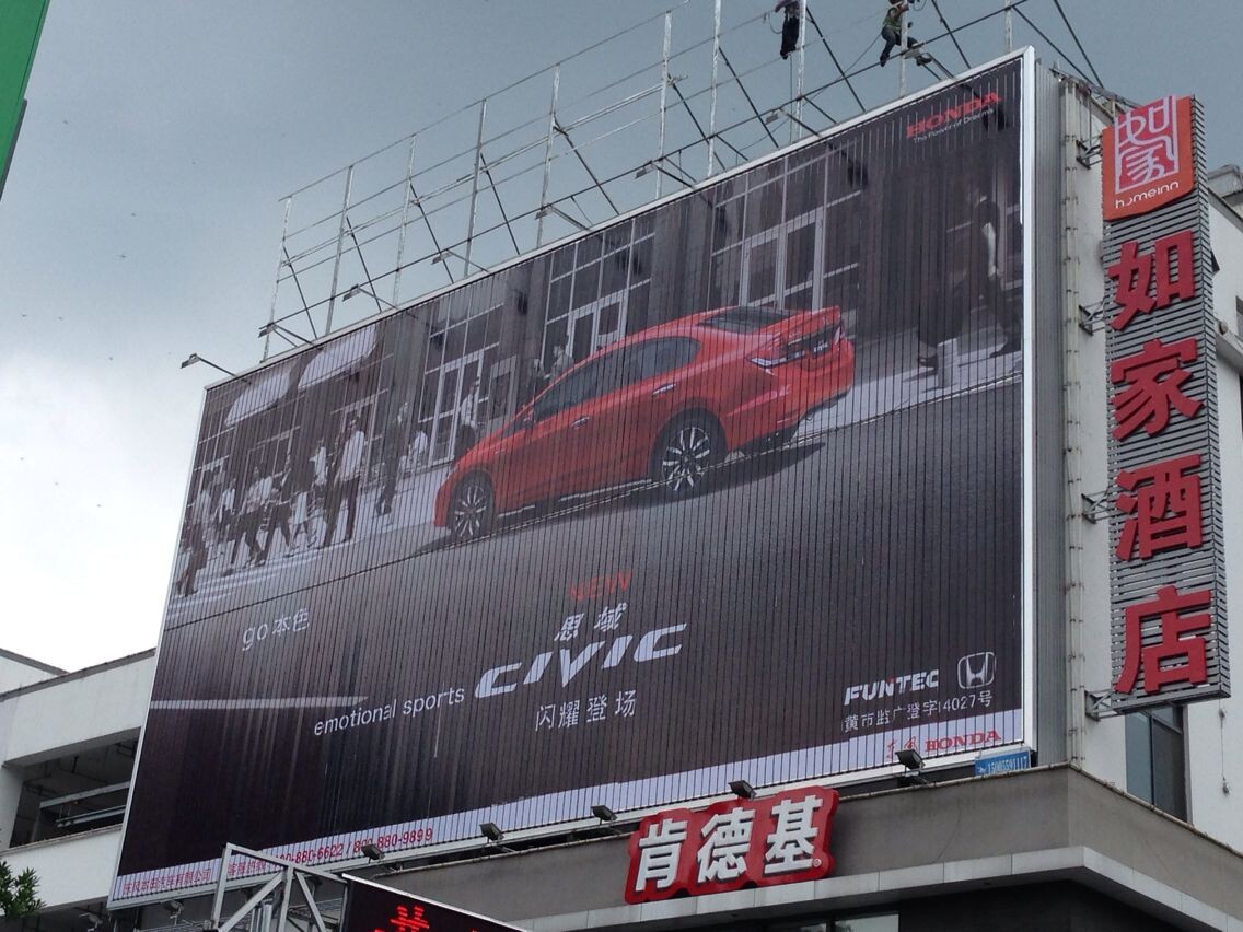 三面翻在一個(gè)平面平臺(tái)上展示三個(gè)畫面,其信息量是普通廣告牌的三倍。充分利用空間,為廣告公司和廣告主都帶來(lái)更為可觀的收益。