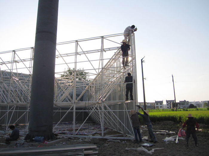 黃祁景高速黟縣漁亭下口收費(fèi)站處高架廣告牌施工