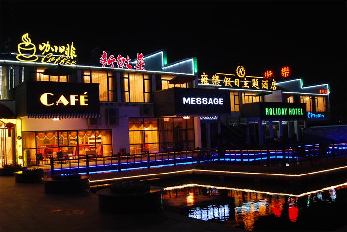 黃山樂街,是樂拓者公司在國內(nèi)投資的三個(gè)大型戶外運(yùn)動(dòng)俱樂部之一,同時(shí)也是黃山樂拓者山地戶外運(yùn)動(dòng)俱樂部的項(xiàng)目示范街,由三棟新派徽式建筑組成。根據(jù)客戶年齡和文化層次,劃分為動(dòng)感區(qū)、私密區(qū)和經(jīng)典區(qū),服務(wù)定位是時(shí)尚休閑旅游。我們公司所做的夜景亮化,為樂街徽派建筑錦上添花,注入了時(shí)尚與強(qiáng)烈的現(xiàn)代氣息。